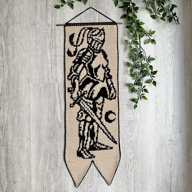 Bring your whimsical Lady Knight to life in yarn and let it guard your world.