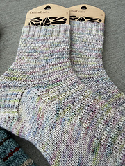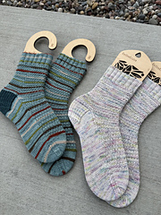 This is a cuff down sock pattern, with a heel flap and gusset. The pattern is created with a simple stitch pattern that is easy to memorize and doable for beginnner sock knitters :)