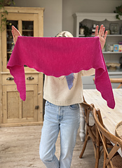The Manderley Triangle Scarf is a tip to tip garter stitch scarf with a scallop border on two of its three sides. The scarf is a wonderfully enjoyable project, worked flat in knit stitch with the