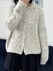 this cardigan features flowing cable motifs that create a fresh and distinctive look.