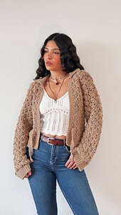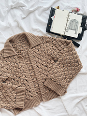 The construction is simple and stress-free, as it’s worked mostly straight and creates a drop-shoulder shape. It’s the perfect cardigan for mid-season, with a slightly oversized fit.