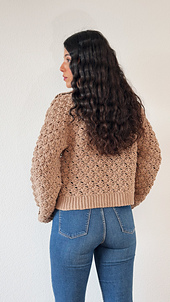 For the Lily Cardi I wanted to create an open cardigan that feels comfortable and relaxed. After testing many stitches and making a lot of swatches, I chose this stitch with puff stitches that remind me of lily flowers. It gives the piece a beautiful texture and a nice weight.