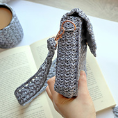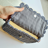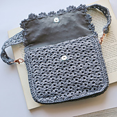 Materials: Tapestry needle, scissors, 1 magnetic snap closure, fabric for lining (required due to openwork stitch), optional: 2 lobster clasps and 2 D-rings for adjustable strap