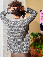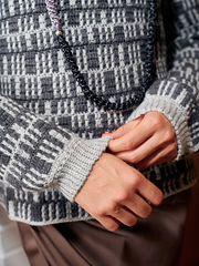 The sweater is worked bottom up, first working the body in the round. Once the body is complete, it’s divided into two sections: front and back, which are worked flat (so you’ll need to cut the yarn at the end of each row and rejoin it at the start of the next one). Then, the pieces are joined at the shoulder area. The neckband and cuff are worked using the join-as-you-go method. Finally, the sleeves are worked seamlessly and in the round, directly from the armholes.