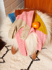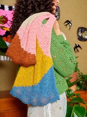 Suus takes inspiration from the shape of a grocery shopping bag. It comes in two sizes: the smaller version fits essentials such as a wallet, phone and water bottle. The larger size is perfect for everyday groceries. The design contains colour-block panels to create a modern look and provides endless options for playing with colours, making it also a great stash-buster project. Suus is made from 100% linen yarn, one of the sturdiest natural fibers. The more it is worn, the softer and more beautiful the linen becomes.