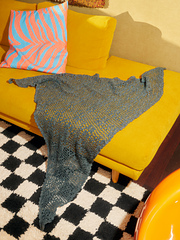 The shawl is worked like a pixel grid, in what is known as “filet crochet”. Filet crochet is made up of filled (solid) squares of double crochet stitches and open (empty) squares made up of several chain spaces, gradually forming a pattern. With each row, the grid grows by one “pixel” tall and one “pixel” wide. The graphic design emerges row by row, revealing itself slowly. Work is increased by 3 sts each row.
