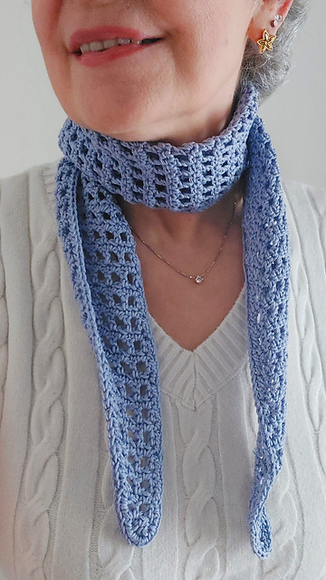In questo pattern si descrive la lavorazione della versione basica della sciarpina, realizzata in cotone, utilizzando solo punti base dell’uncinetto (maglia alta e maglia bassa).