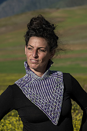 First the neck is worked knitted flat, using short rows to shape the back neck, then it joins with an overlapping front part to be worked in the round, and finally it is worked flat again to shape the chest part.