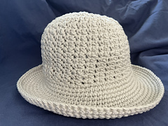 The hat is worked in 100% cotton worsted weight yarn held double, making it breathable, structured, and machine washable — ideal for a summer sun hat.