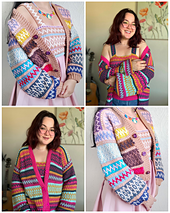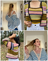 This Mosaic Crochet cardigan and top co ord is the perfect addition to your wardrobe! It can be made in a subtle version like mine using two colours, or in a vibrant collective of 8 or more colours like some of my lovely testers!