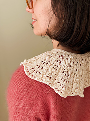 Le **Mahonia Collar** est un joli col claudine en point dentelle à porter sur votre pull ou tee shirt préféré. Une finition avec un I-cord, vous permettra de nouer le col autour de votre cou. La longueur du col est facilement ajustable en tricotant des répétitions de points dentelle supplémentaires, ce qui vous permet de personnaliser la taille et le drapé.