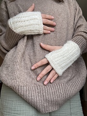 I used a size 4/4.5 mm hook for both featured examples. If you choose, you may either do this pattern using one strand of your desired yarn that meets gauge or if you would like to, you may use a medium weight yarn held with one strand of alpaca/mohair.