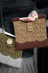 La pochette **BAGGU N°4** se tricote comme un tube, puis se plie pour former 3 poches. Amusez-vous avec de la laine bouclée ou du mohair, selon vos préférences !