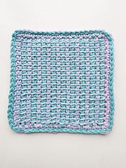 A dense absorbent and fairly smooth textured cloth which is really relaxing to make. It makes a great mat too and can be made any size by adding however many stitches or rows you want!