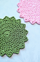 This simple coaster features the double crochet stitch, making it easy to make and beginner friendly. Each coaster works up in about 15-20 minutes and is perfect for using different colors to create a varied set.