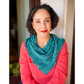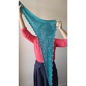Este xaile é trabalhado a partir de uma ponta, formando um triângulo assimétrico através de aumentos constantes num dos lados e diminuições graduais no lado oposto. O ponto utilizado cria uma superfície texturada e regular, dando estrutura ao tecido sem o tornar pesado.
