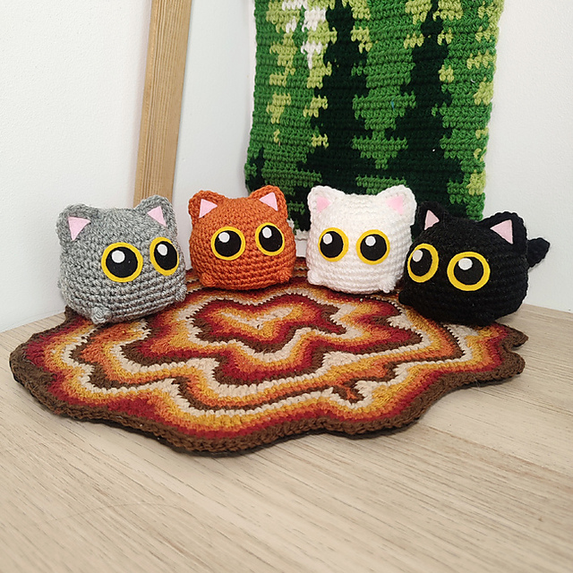 I made mine using size 4 yarn with a 3,5mm crochet hook, and the plush is 8cm tall and wide !