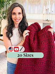 With 20 size options, this versatile crochet blanket pattern can be made into everything from loveys and baby blankets to full-size throws and king-sized bed blankets.