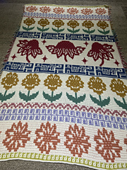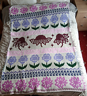 More Bursts of Flowers is worked in single-colour rows using the overlay mosaic crochet technique, and is finished off with a simple envelope border to hide the loose ends.