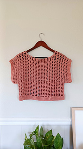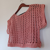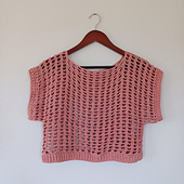 This Spring Break Mesh T-Shirt pattern is written in American ENGLISH terms and measurements. It includes step by step written instructions and photos and size charts. Pattern includes sizes: Small, Medium, Large, XLarge, 2/3 XL, and 4/5 XL. This top is made using size 3 Lion Brand Coboo bamboo yarn.