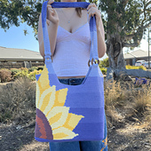 The bag is worked in rows using single crochet and true intarsia technique. The sunflower design is created using your choice of a stitch chart or written instructions.