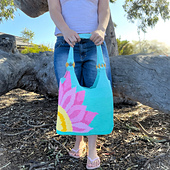 The **Sunflower Bloom Gradient Bag** is a joyful statement piece featuring a radiant sunflower set against a flowing gradient background. Designed to be both beautiful and practical, this structured bag blends bold intarsia colourwork with thoughtful construction to create something you’ll truly love to carry.