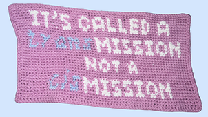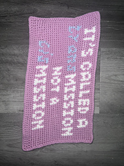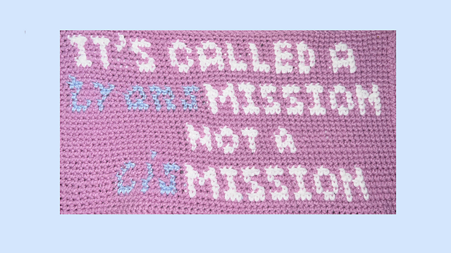 A tapestry grid for crochet that says “It’s Called A TRANSmission not a CISmission”