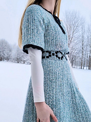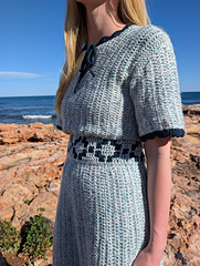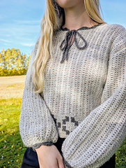 Crochet your own elegant blouse with thoughtful details, highlighted by a striking mosaic crochet band. The pattern includes several shaping features for a comfortable, tailored fit.