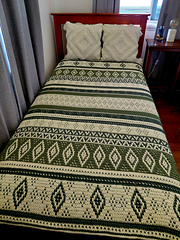 This throw can be made larger by adding repeats to each row and repeating patterns of your choice more than once.