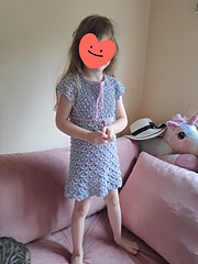 Wzór przeznaczony jest dla kobiet i dziewczynek. Karczek regulowany jest grubością szydełek. Jest to bardzo delikatna i urocza koronkowa sukienka. Pliki zawierają schematy graficzne, filmy instruktażowe i zdjęcia trudniejszych elementów. Nie ma wersji opisowej krok po kroku.