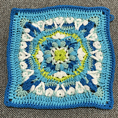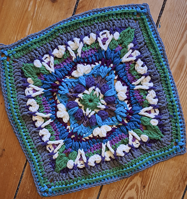 Members of the 2024 Crochet Block-a-month CAL (BAMCAL) group came together to design a square. Different members took it in turns to create a round or two and the square evolved. This is the result.