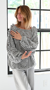 This sweater is made from elegant square motifs joined together into a soft, structured silhouette. The subtle texture of the squares and gentle ruffle accents along the sleeves give the sweater a refined and modern look while keeping the crochet process enjoyable and clear.