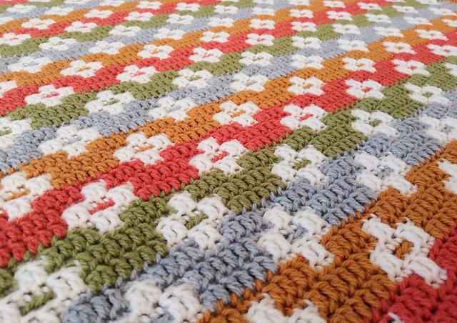 The Wildflowers Throw is a textured mosaic crochet design inspired by the beautiful countryside surroundings in which I reside. Featuring stripes of warm, earthy tones, this throw captures the feeling of sunlit fields and natural landscapes, bringing a sense of calm and comfort.