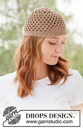 **Crocheted hat in DROPS Safran. The piece is worked top down with netting pattern.**