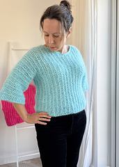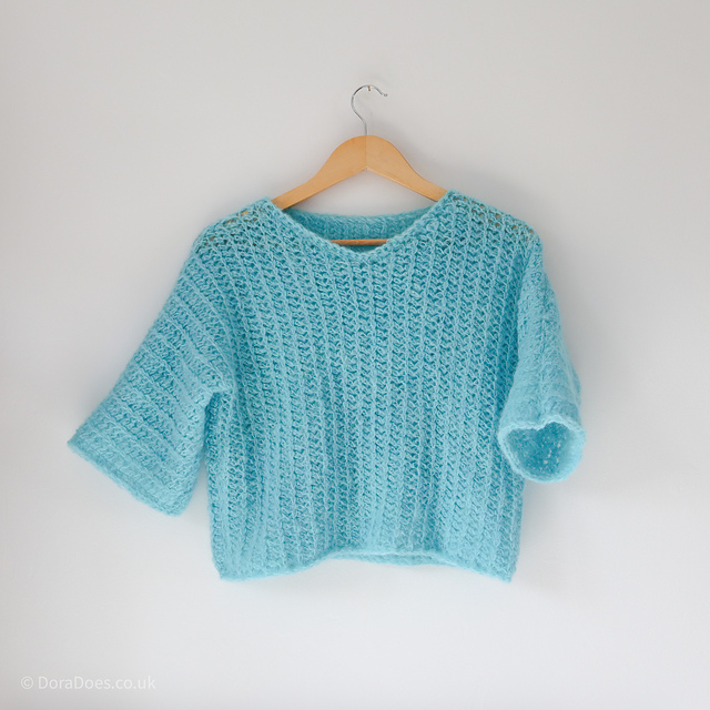 This is a fairly basic crochet sweater pattern, made in just two pieces, requiring knowledge of basic crochet stitches, techniques and terminology.