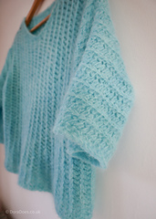 Sweater: Mamie and Florrie, Baby Suri Alpaca, 100% Alpaca, in shade ‘Ice swim at Combs’.100g = 400m.