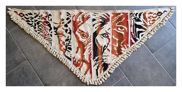 My testers wanted a shawl with an African flair featuring the continent’s iconic animals – and I was more than happy to fulfil this wish. The result is an extraordinary shawl that is crocheted across from one corner to the other.