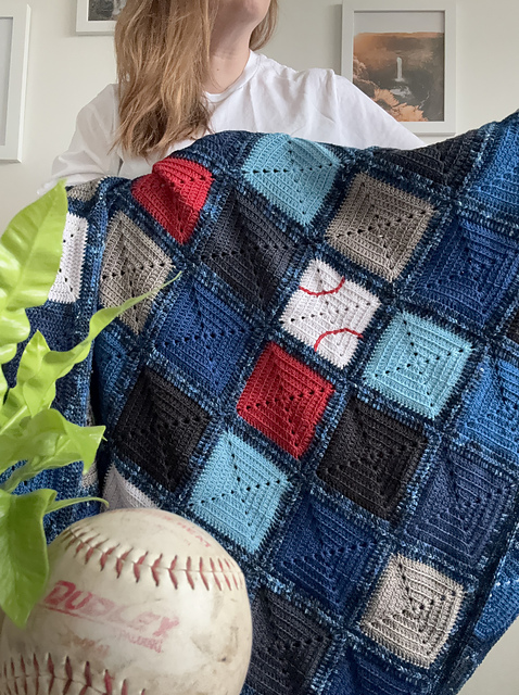 *****THIS PATTERN IS AVAILABLE FOR FREE ON MY WEBSITE AT: https://www.nautikrallcrochet.com/blog-freepatterns/batterupbaseballgrannysquareblanketpattern