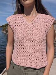 This is a light, breathable crochet top made from two simple panels: front and back.