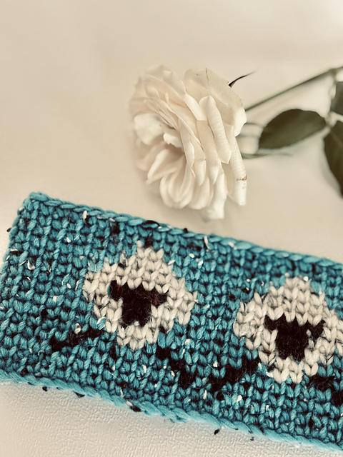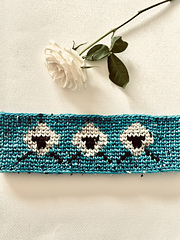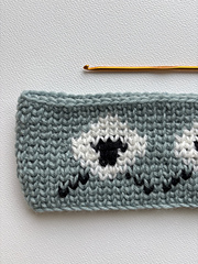 Headband worked in waistcoat stitches. Follow video link in pdf to make sure you stack the stitches straight on top of each other. This will prevent the stich pattern from leaning left, when mulitple rows are worked on top of each other.