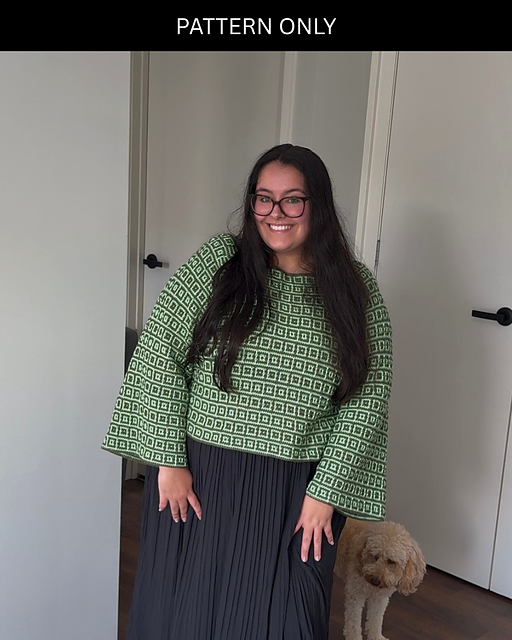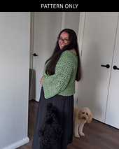 The Squares Raglan is a versatile 2-in-1 digital download crochet pattern designed to be worn as either a lightweight sweater with loose bell sleeves or a relaxed t-shirt. Constructed using a raglan-style yoke, this made-to-measure design allows you to customise the fit as you go.
