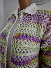 The jacket is for L size and I use for variegard yarn 265 gr of yarn and for the white I use 165 gr of yarn . In total 430 gr of yarn.