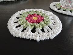 We have included a link to a short video clip in the pattern to show how we do this wrapped sc which gives a sturdy edge to the coaster.