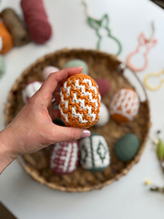 Each egg is worked using overlay mosaic crochet in the round, making them both fun to create and satisfying to finish.