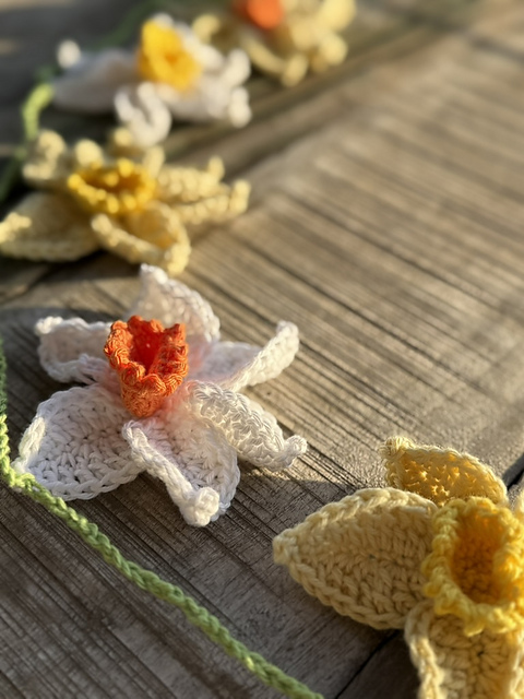 Pattern designed for Fiddlesticks Wren in White, butter, Duck, Leaf and Mandarin (or another 8 ply cotton in corresponding colours).