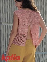 A sleeveless crochet top that celebrates summer with a very feminine open back. Mesh stitch at the lower body lightens the silhouette, while the rest in double crochet provides balance and comfort.