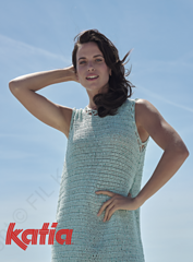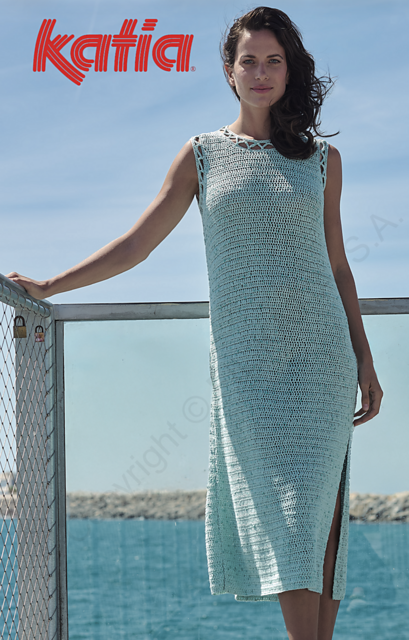 Fluid movement and understated light. This long, sleeveless crochet dress features a side slit for greater freedom of movement. Lace frames the neckline and armholes for feminine flair, while *Concept Universo* adds a subtle, elegant shimmer.