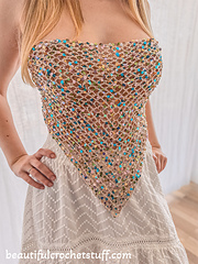 Crochet this lightweight sequin shawl that can be styled in multiple ways. Wear it on your hips, as a bandana, or even as a top. The pattern starts from the middle of the width, not from the tip of the triangle, and grows wider with each row.