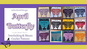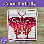 *April Butterfly* is the fourth pattern in the *2026: A Year of Butterflies* series of large squares. Each month's design can be made using interlocking crochet or overlay mosaic crochet.