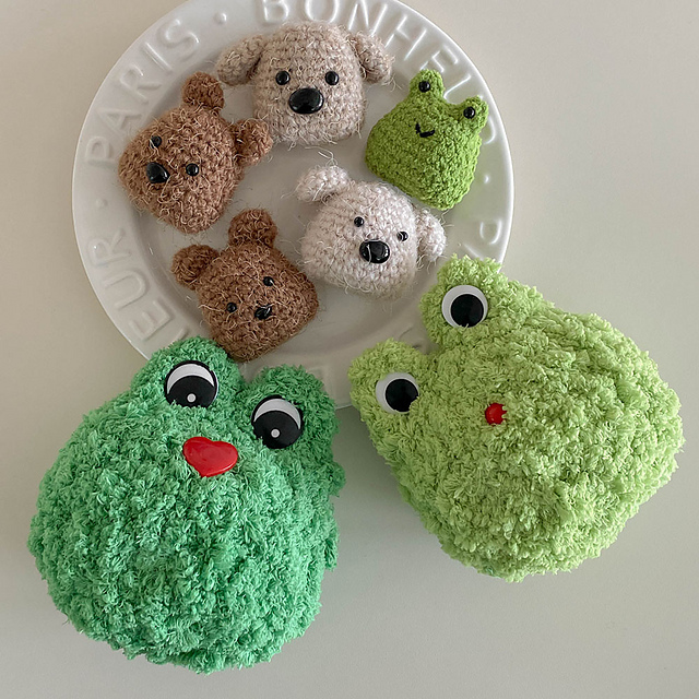 This is a small amigurumi-style project worked in the round, starting from a foundation chain and forming an oval shape. The piece is then worked upward and folded in half to create the final form.